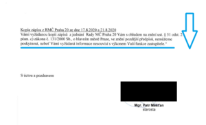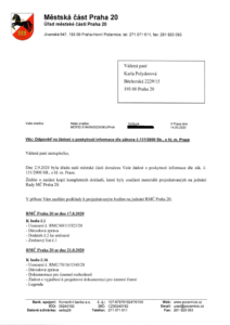 Jako zastupitel jsem požádala Úřad MČ Praha 20 o informace, na které mám ze zákona nárok (dle zákona č. 131/2000 Sb., o hl m. Praze o poskytnutí informace). Žádala jsem o kopie zápisů z jednání Rady MČ Praha 20. O tom, zda je můj požadavek oprávněný jsem se nejdříve dotazovala úředníků z Ministerstva Vnitra ČR (MVČR). Zde mi potvrdili, že na požadované informace, tedy na kopii zápisu z jednání rady mám právo, neboť souvisejí s výkonem funkce zastupitele (§ 51 odst. 2 písm. c) zákona č. 131/2000 Sb., o hlavním městě Praze).